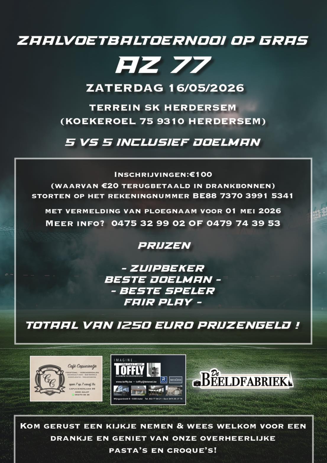 ๐๐ผ โฌ100 (waarvan โฌ20 terugbetaald in drankbonnen op tornooi zelf)